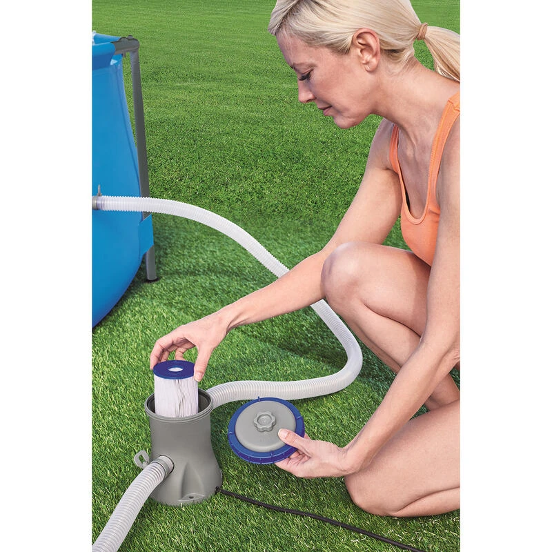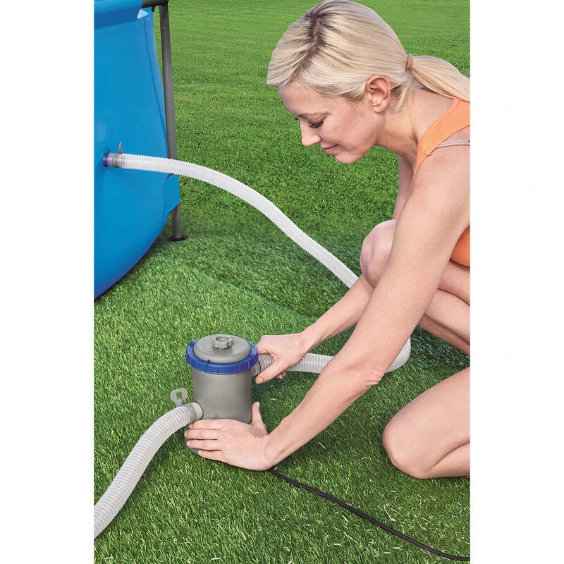 * Pompe filtrante pour piscines hors sol * CE/EMC approuvé * Matériel : plastique * Débit intégré d’eau de piscine (débit du système) : 1060 litres/heure * Capacité de filtre 1249 litres/heure