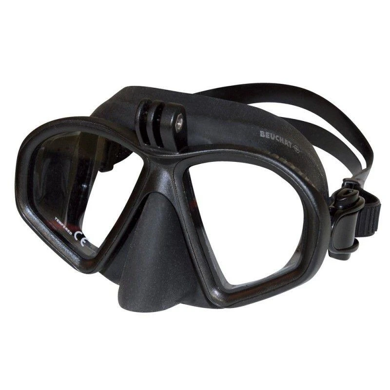 Masque avec support de caméra type Go Pro pour la chasse sous-marine, la plongée, l’apnée ou la randonnée aquatique.Masque avec support de caméra type Go Pro pour la chasse sous-marine, la plongée, l’apnée ou la randonnée aquatique.