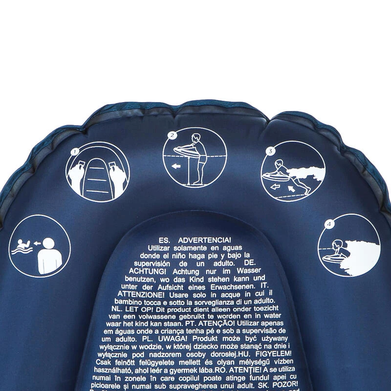 ATTENTION ! Danger de blessures en raison des caractéristiques fonctionnelles de ce jouet. Petites parties – Danger d’étouffement. A n’utiliser qu’en eau où l’enfant a pied et sous la surveillance d’un adulte. Une vigilance particulière doit être appliquée en cas de vent et/ou de courant. Les équipements de sécurité tels que gilets d’aide à la flottabilité ou brassards sont vivement recommandés. Ne pas utiliser par des enfants de 3 ans et moins. Possible d’ajouter un leash, achetable séparément.