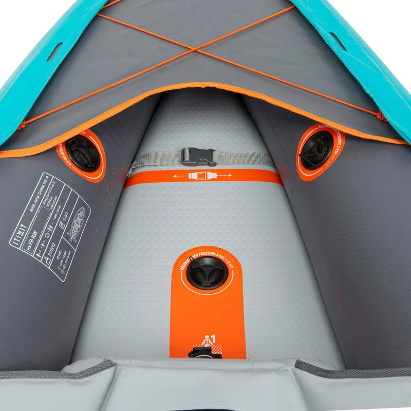 Le pont du kayak Itiwit 100+ reprend la même construction en « dropstich » que les Stand up paddle gonflables. Le dropstich est un maillage en fils de polyester; entre 2 couches de PVC. Lors du gonflage haute pression du plancher, les fils se tendent et la construction devient très solide et évite ainsi toutes déformation.