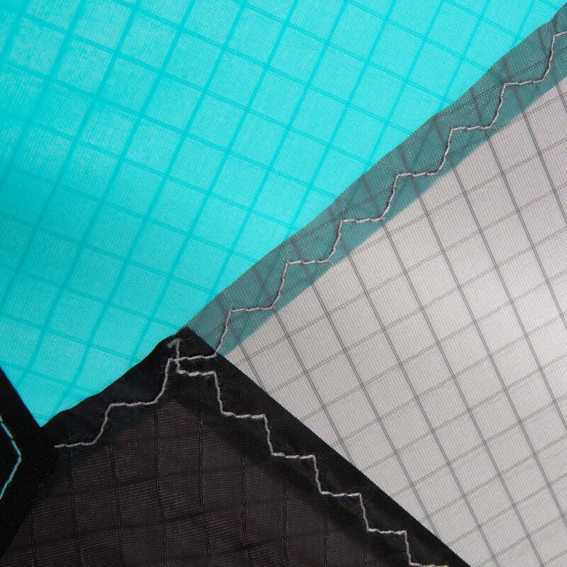 – Spi 20D en POLYAMIDE (40g/m²) double ripstop, et structure en tubes en carbone roulé pour allier légèreté et rigidité