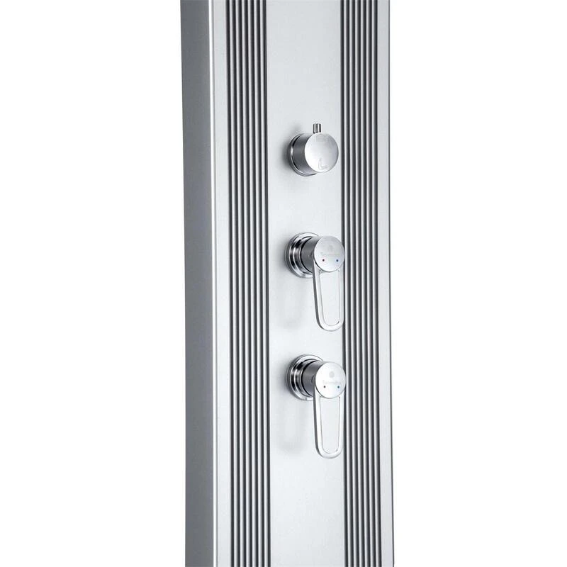 Dada Straight 40L : Élégance et technologie. Douche hybride en aluminium, mitigeur gravé au laser, Inverseur pommeau/douchette, pommeau anticalcaire et douchette amovible.