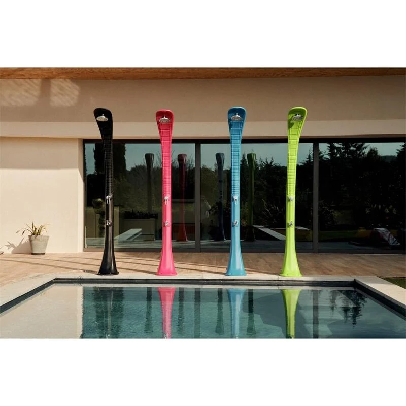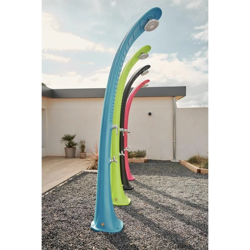 Douche Solaire COBRA : Design Unique, Utilise l’énergie solaire, Facile à Installer. Rince-pieds inclus, PEHD Recyclable. Prêt pour la détente au soleil!