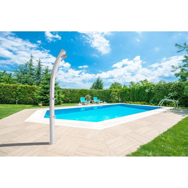 Douche Solaire Jolly 25L : Moderne & Fonctionnelle ! Corps en Aluminium, Utilise l’énergie Solaire, Rince-pieds inclus, Installation Facile, Kit de Fixation Inclus.
