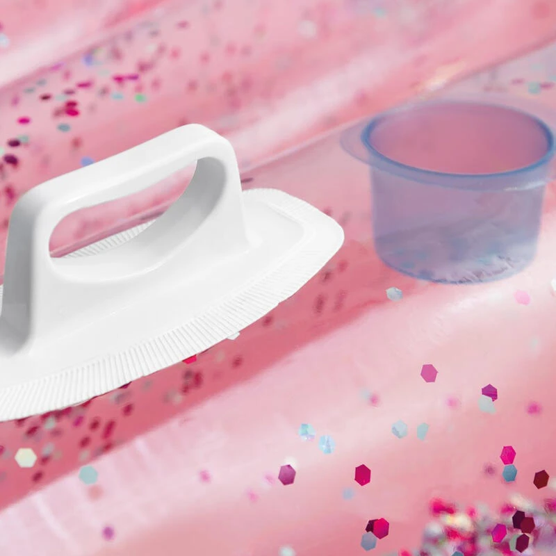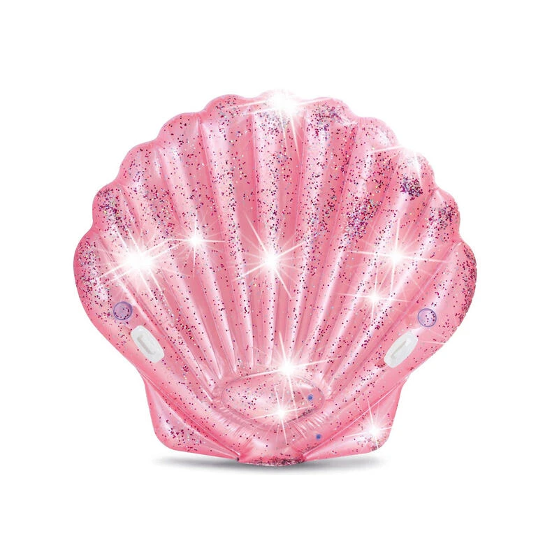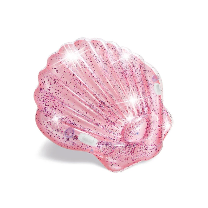Matelas à air en forme d’une coquilleDesign en rose scintillantAvec 2 poignées solidesCharge maximale jusqu’à 200 kgDimension : 178 x 165 x 24 cmIncluant matériau de réparation