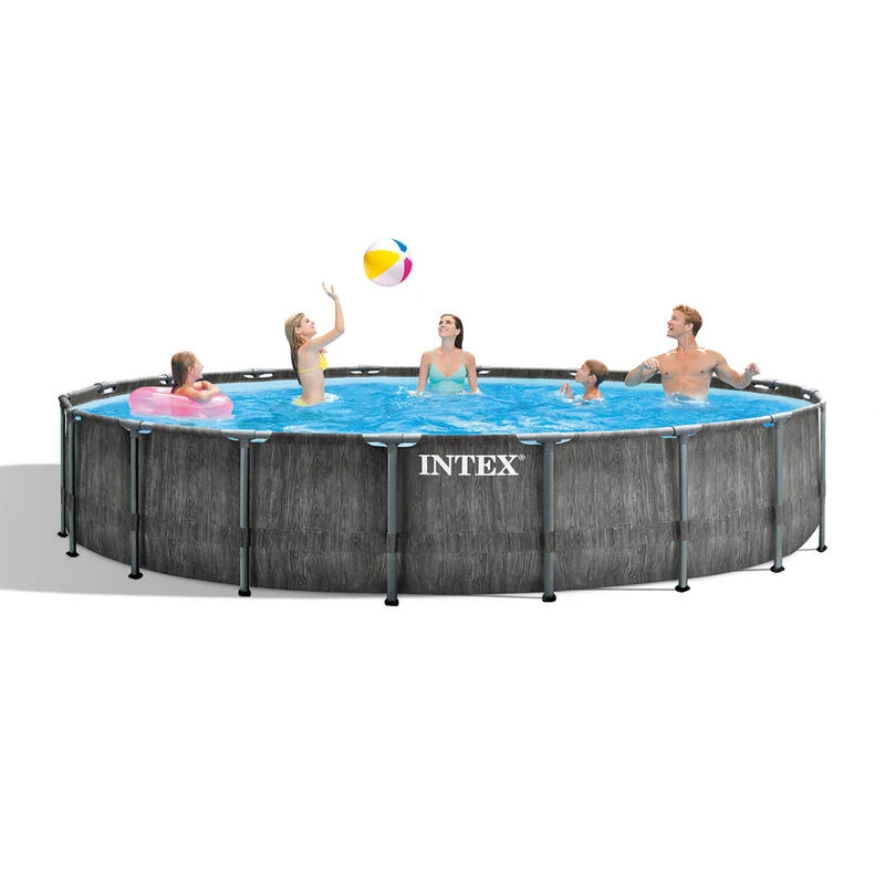 Piscine tubulaire Baltik ronde 5,49 x 1,22 m – Intex. Liner en PVC armé triple épaisseur avec effet bois inspiré des tendances scandinaves.Accessoires inclus : • Un filtre épurateur à cartouche 4,4 m