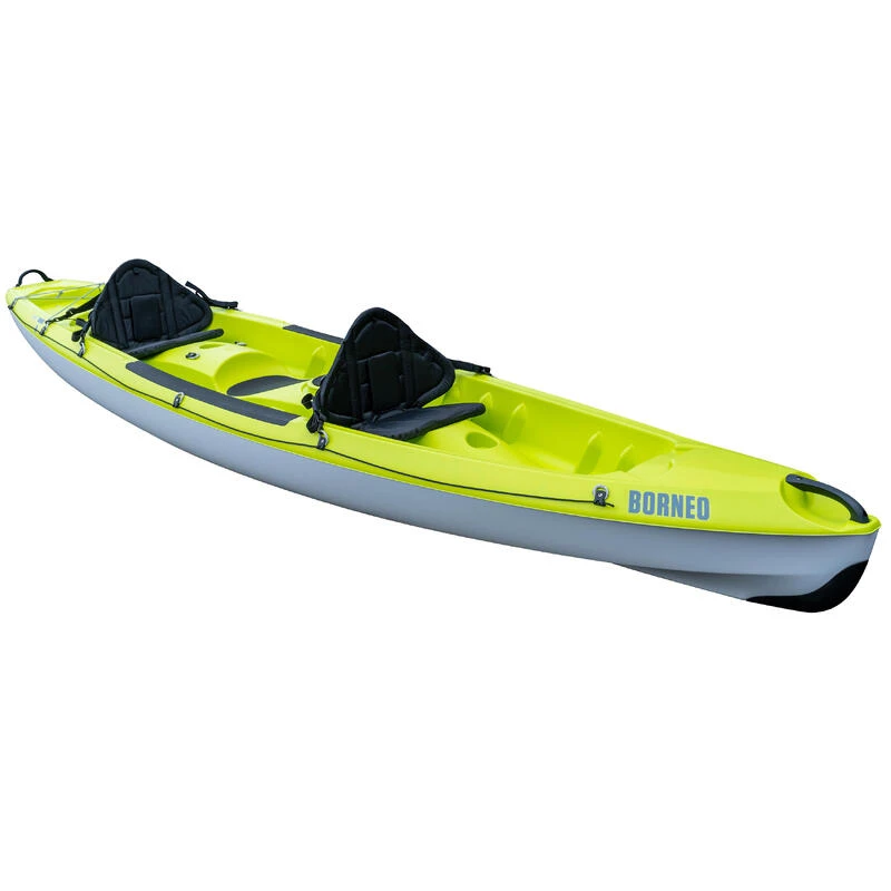 Le Bornéo est un kayak Sit-On-Top double avec un shape innovant qui lui confère une bonne glisse et stabilité. Il est équipé d’une plateforme de stockage.Réalisée à partir de plaques de polyéthylène thermoformé, la technologie Twin Sheet utilisée sur les kayaks TAHE assure résistances aux chocs, aux rayures et une durabilité exceptionnelle.