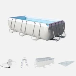 Kit grande piscine tubulaire – Topaze grise – piscine rectangulaire 4x2m avec pompe de filtration. bâche de protection. tapis de sol et échelle. piscine hors sol armature acier