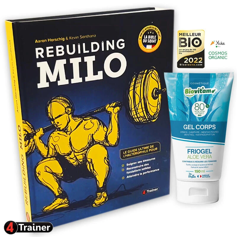 Un pack exclusif comprenant REBUILDING MILO, le guilde ultime de l’haltérophile et le gel froid FRIOGEL aux multiples effets réparateurs.