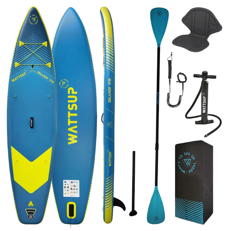 Découvrez les joies du stand up paddle ou du kayak avec notre pack silver 11’6″ (planche, pagaie, pompe, siège kayak). Vous pouvez pratiquer seul ou à deux.Tout en un convertible en stand up paddle ou kayak. Sa largeur de 33″ (84 cm) vous offrira une bonne stabilité pour pratiquer seul ou à deux. Sa forme plus racée vous assurera de la vitesse.