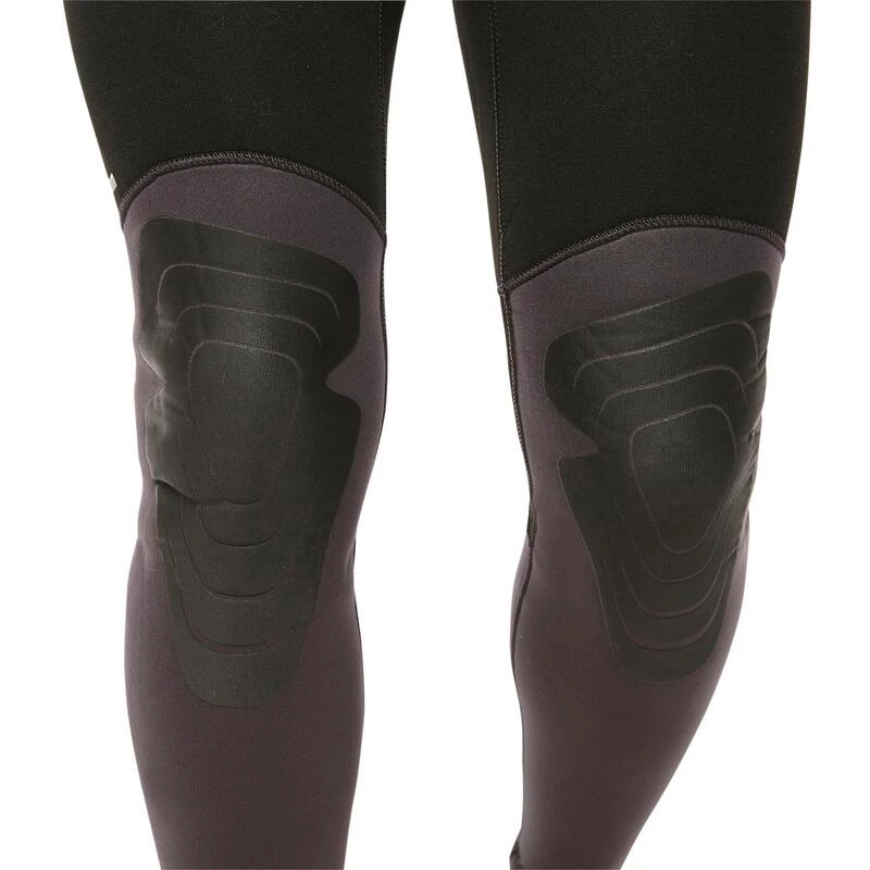 Le néoprène est collé dans un premier temps, puis cousu pour une résistance maximale à l’abrasion. La couture est spécifique : l’aiguille utilisée ne traverse pas complètement le néoprène afin d’éviter l’infiltration de l’eau lors de la pratique.
