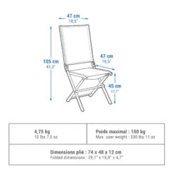 Quechua CHAISE DE TABLE PLIANTE ET CONFORTABLE POUR LE CAMPING
