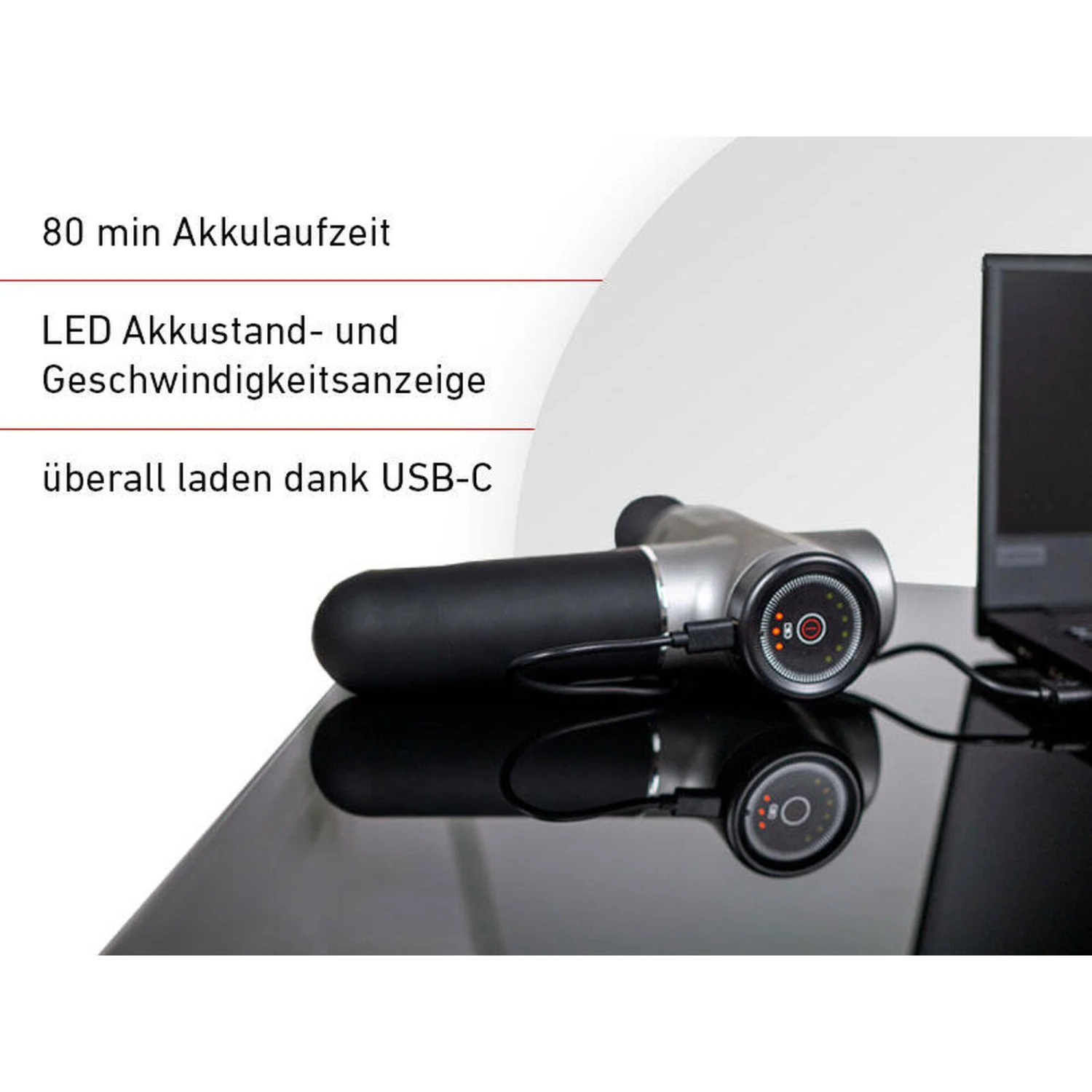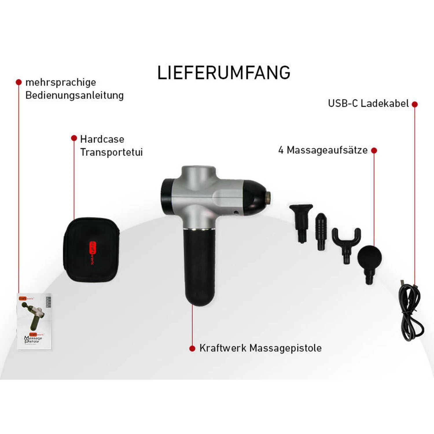 Pistolet de massage rechargeable avec 4 embouts de massage interchangeables – idéal pour tout le corps, détend jusqu’aux tissus profonds & est parfait pour les déplacements ou comme cadeau !Pistolet de massage rechargeable avec 4 embouts de massage interchangeables – idéal pour tout le corps, détend jusqu’aux tissus profonds & est parfait pour les déplacements ou comme cadeau !