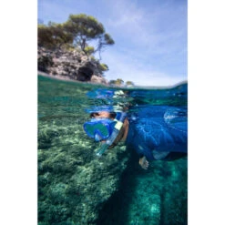 Tuba Plongée Sec Avec Soupape Système Drytop – 100 Dry Top Bleu Gris