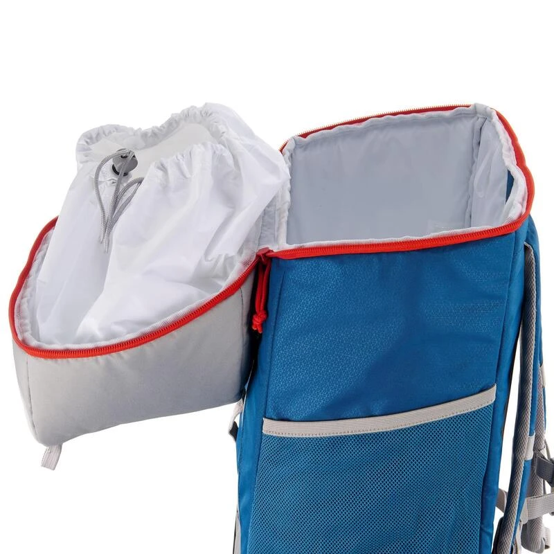 Vous trouverez à l’intérieur une poche filet pour une meilleure organisation et gestion de vos aliments, un système pour maintenir une poche à eau ou des bouteilles droites pendant le transport, ainsi qu’un emplacement marqué d’un flocon de neige pour votre accumulateur de froid.