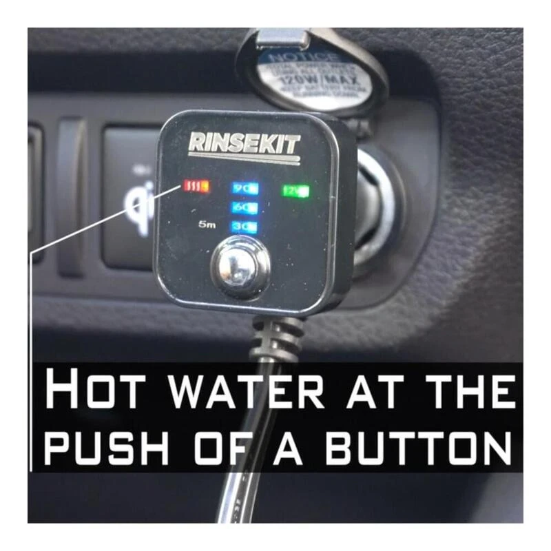 Compatible uniquement avec le RINSEKIT Plus ou bien le RINSEKIT POD Le tout nouveau kit chauffant RINSEKIT Hot Rod Water Heater chauffe rapidement et en toute sécurité l’eau de votre Rinsekit à la