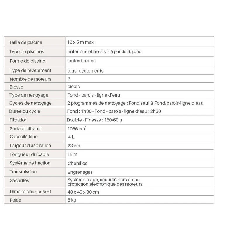 Robot de piscine électrique pour piscines jusqu’à 12x6m fond parois ligne d’eau