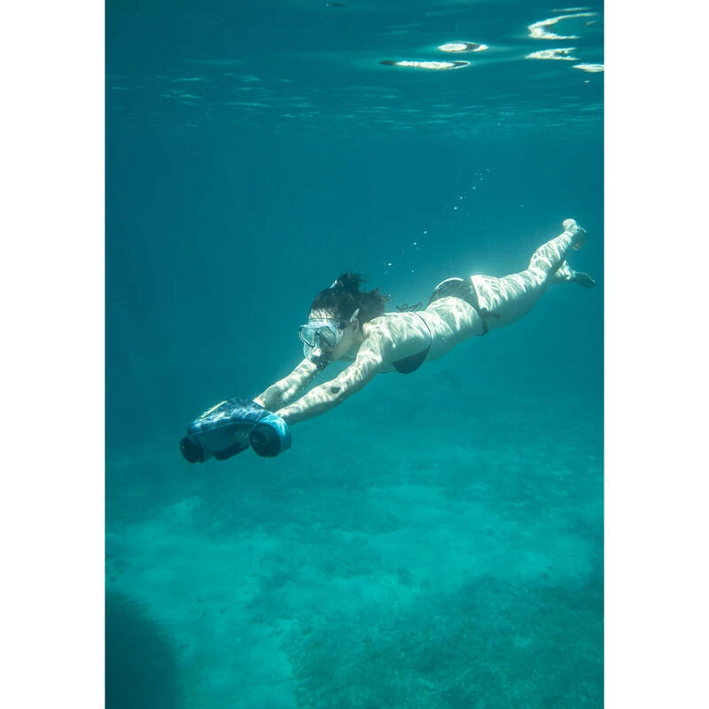 Ce scooter sous-marin auto-flottant à propulsion électrique vous permet d’explorer les fonds marins en toute liberté.Alimenté par batterie rechargeable, vous pouvez explorer les profondeurs jusqu’à 40 minutes. Ce pack comprend deux batteries, une recharge secteur, un set masque/tuba, un sac de transport