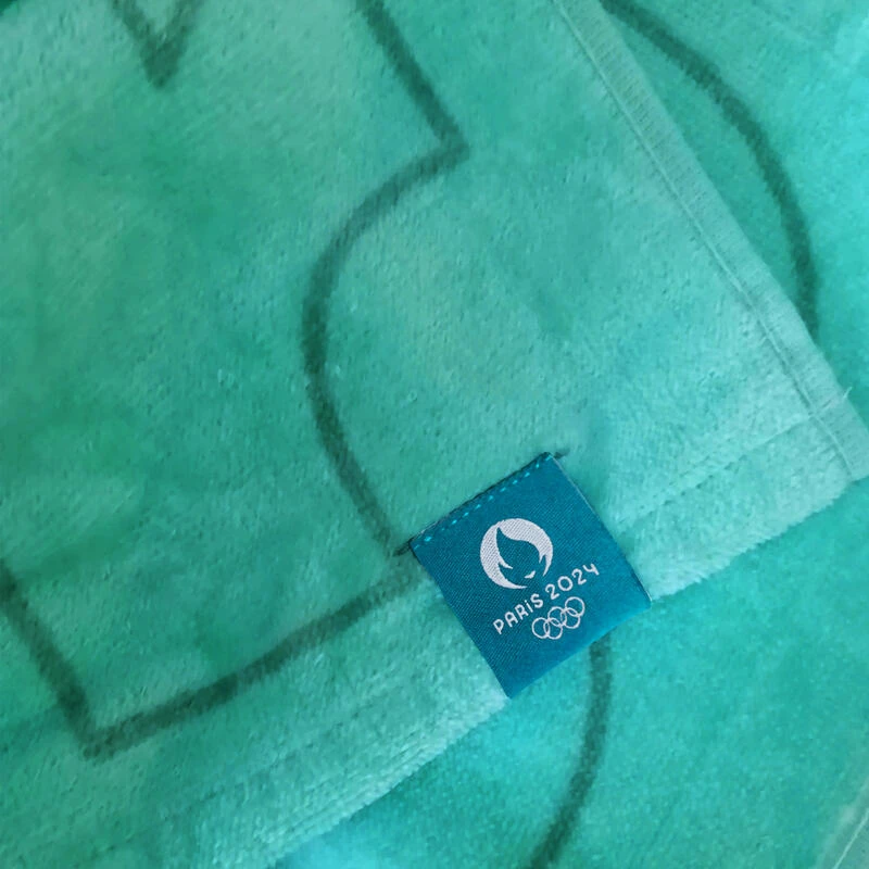 Serviette de bain des Jeux Olympiques de Paris 2024 pour les fans de surf. Conçue d’une face bouclette pour une bonne capacité d’absorption et d’une face velours pour un maximum de douceur.