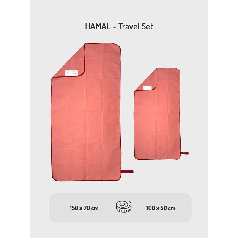 Set de deux serviettes en microfibre certifiées Oeko TEX, légères, peu encombrantes et à séchage rapide. Parfaitement adaptées aux voyages, au sport et à la natation.