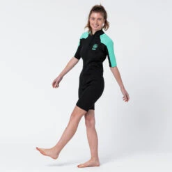 Top Anti UV Manches Courtes Femme Néoprène 1 Mm – Turquoise Fleurs